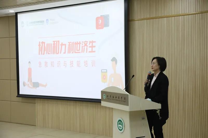 張勤副院校長出席培訓會并致辭,她表示,近年來猝死事件頻發引起社會廣泛關注,掌握急救知識與基本技能對于挽救生命至關重要。本次培訓是落實教育部和北京市教委的工作部署,也是構筑平安校園的重要內容,希望大家能夠學有所得,掌握這一利人利己的技能,同時向家人、朋友推廣相關健康知識和理念,充分展現醫學院校的社會責任。