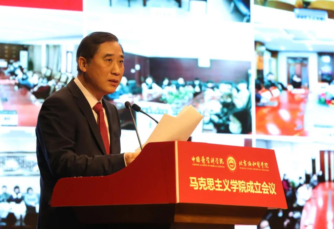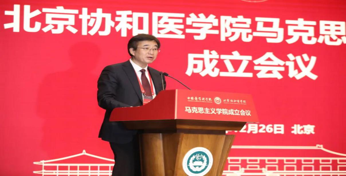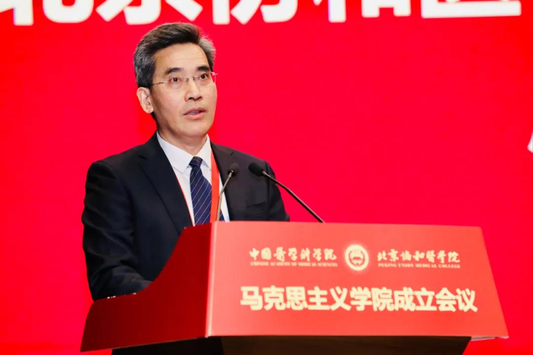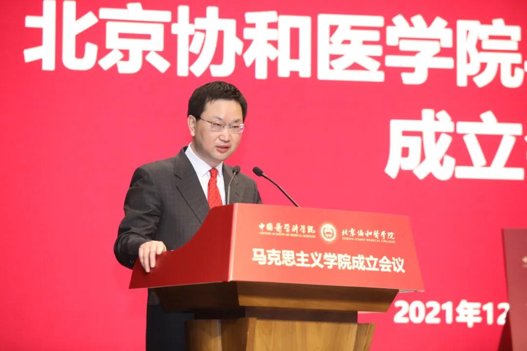 會上,國家衛生健康委直屬機關黨委常務副書記楊建立宣讀國家衛生健康委黨組書記、主任馬曉偉批示。馬曉偉指出,北京協和醫學院成立馬克思主義學院是在新時代新征程上全面貫徹習近平新時代中國特色社會主義思想,落實《關于加強新時代馬克思主義學院建設的意見》的重大舉措。要認真學習貫徹黨的十九屆六中全會精神,堅持正確辦學方向,堅持和加強黨的全面領導,聚焦馬克思主義中國化時代化最新成果的學習研究宣傳,切實發揮思想政治理論課立德樹人關鍵課程作用和馬克思主義理論學科引領作用,大力弘揚和傳承百年協和的優秀基因和精神內核。