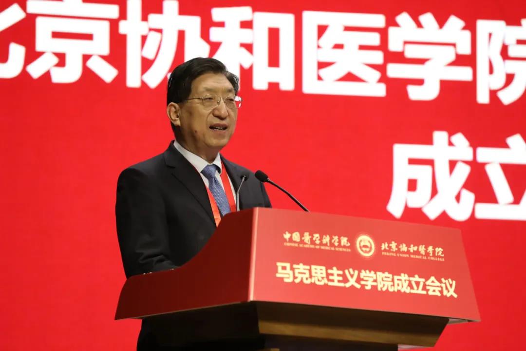 中國人民大學原黨委書記、國務院學位委員會馬克思主義理論學科評議組組長靳諾表示,北京協和醫學院馬克思主義學院建立,將在推進全國醫學院校馬克思主義理論研究、人才培養、社會服務等方面發揮示范作用。要以立德樹人為導向,把思想政治工作貫穿教育教學全過程;要立足新發展階段,推進馬克思主義理論學科高質量發展;站在新的起點上,把思政課辦好辦強,建設好馬克思主義學院,全力培養擔當民族復興大任的時代新人。