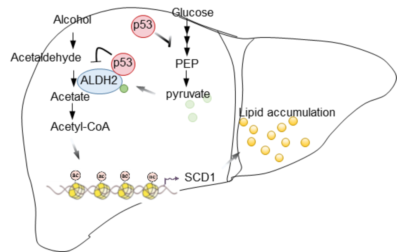 2023年2月24日,中國醫學科學院基礎醫學研究所杜文靜團隊在The EMBO Journal《歐洲分子生物學學會雜志》發表了“p53 protects against alcoholic fatty liver disease via ALDH2 inhibition(p53通過抑制ALDH2保護酒精性脂肪肝的發生)”文。研究報道了腫瘤抑制因子p53在抑制酒精代謝以及酒精性脂肪肝方面的重要作用。