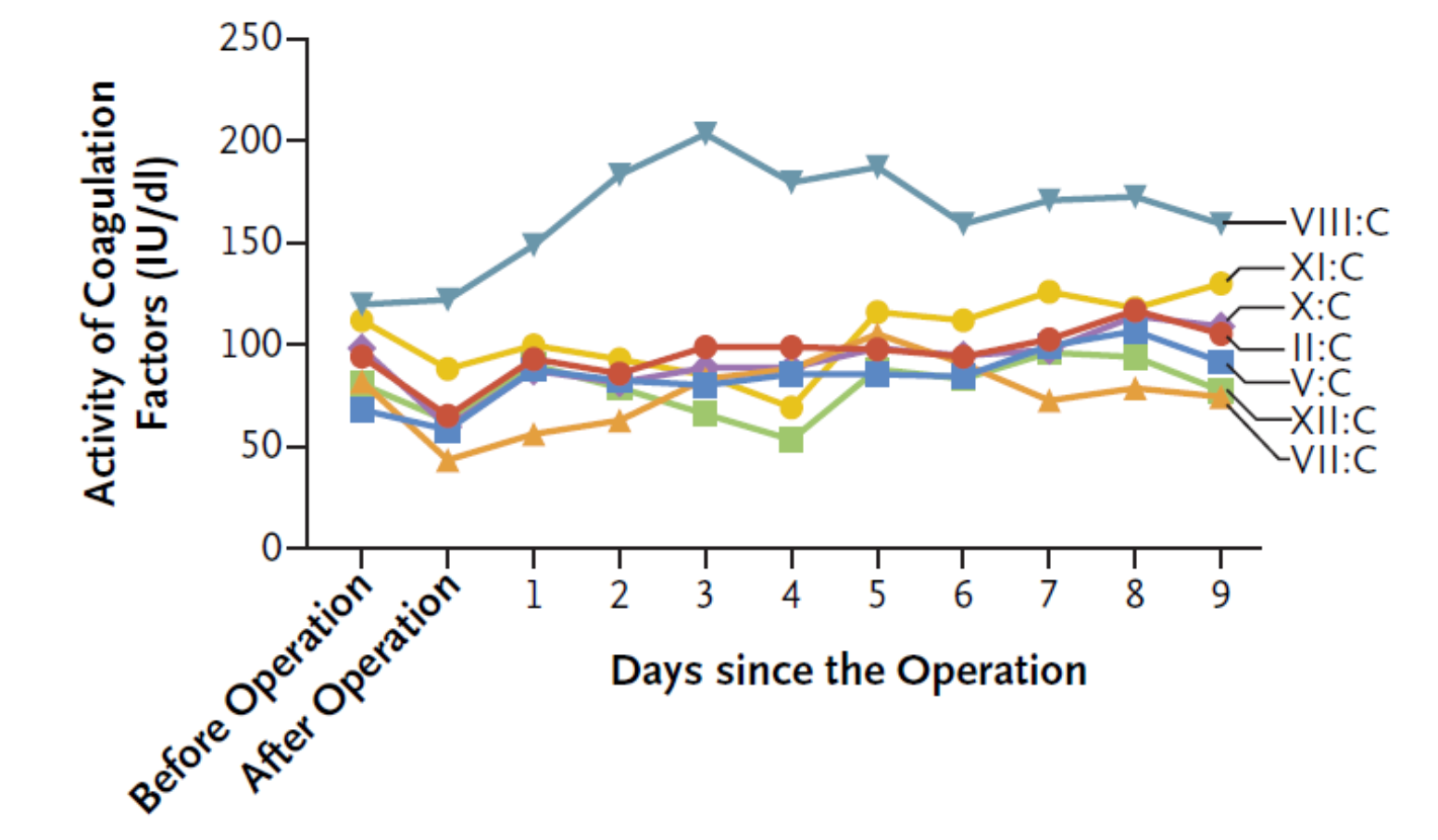 圖3:其他凝血因子(凝血因子II、V、VII、VIII、X、XI和XII)的活性