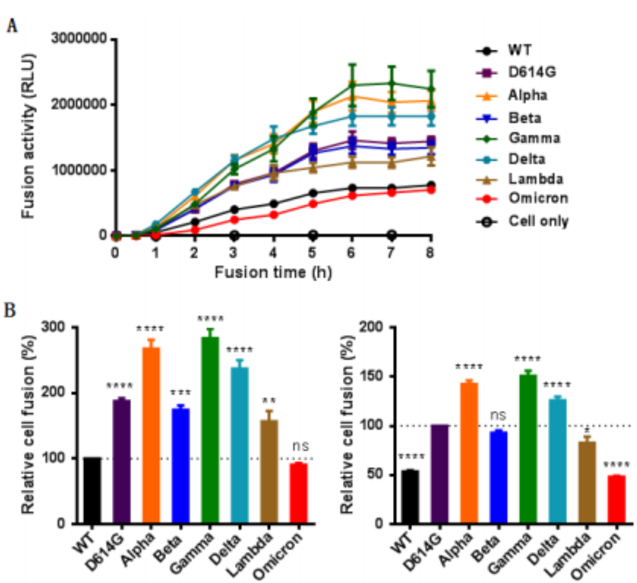 圖. 不同SARS-CoV-2變體的融合活性