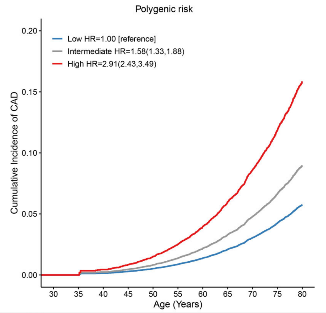 圖1. 不同多基因風險評分個體的冠心病發病風險軌跡