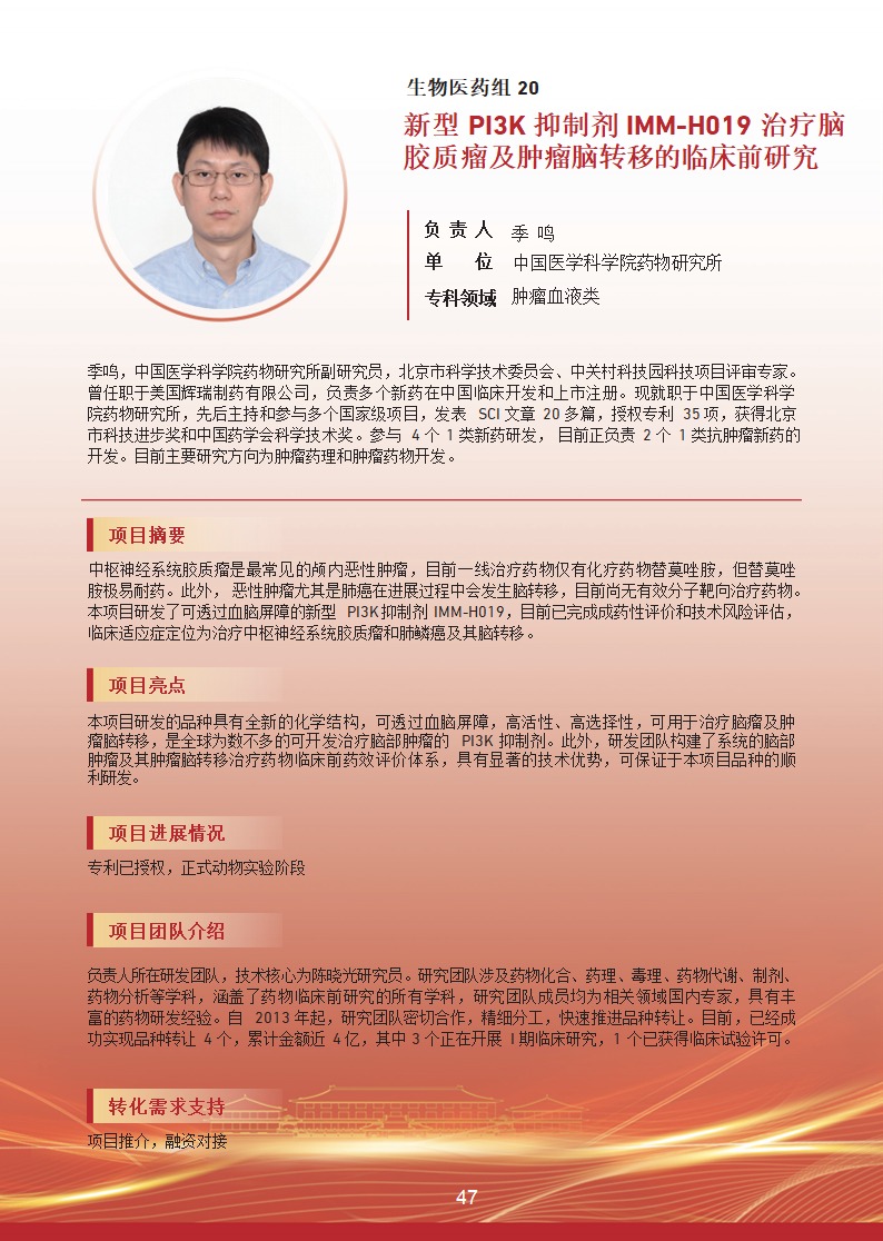 新型 PI3K 抑制劑 IMM-H019 治療腦膠質(zhì)瘤及腫瘤腦轉(zhuǎn)移的臨床前研究