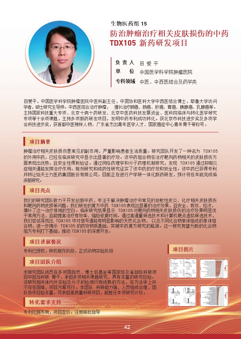 防治腫瘤治療相關(guān)皮膚損傷的中藥 TDX105 新藥研發(fā)項目