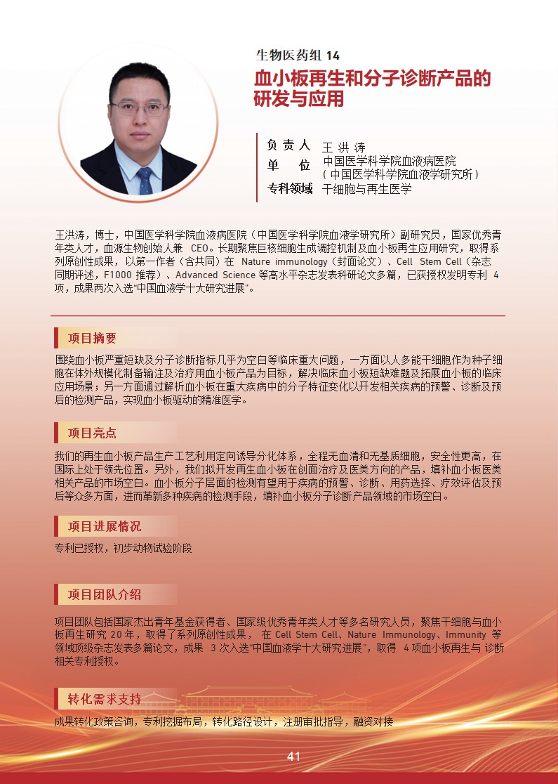 血小板再生和分子診斷產(chǎn)品的研發(fā)與應用