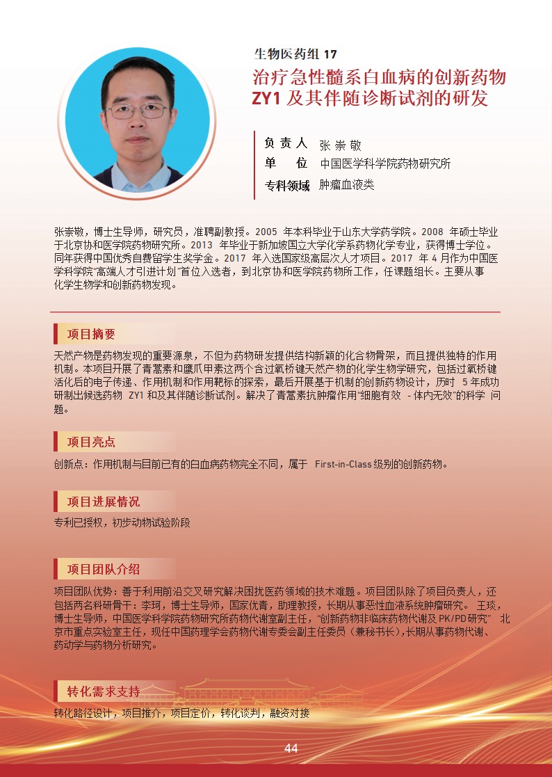 治療急性髓系白血病的創(chuàng)新藥物 ZY1 及其伴隨診斷試劑的研發(fā)