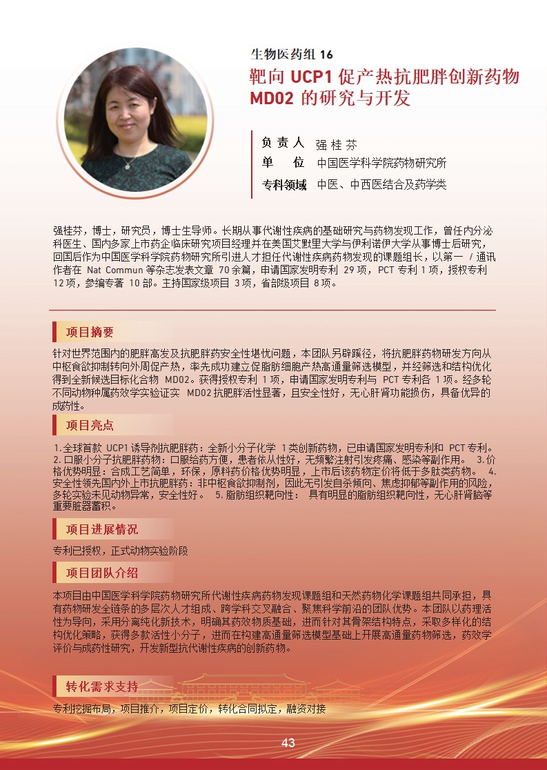靶向 UCP1 促產(chǎn)熱抗肥胖創(chuàng)新藥物 MD02 的研究與開發(fā)