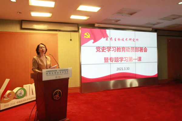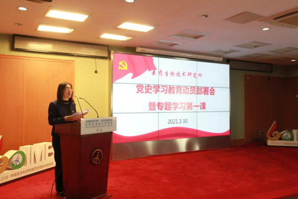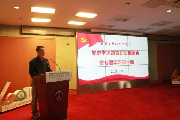 孫波副書記首先通報了《醫藥生物技術研究所關于開展黨史學習教育的工作方案》,并從學習目標、學習內容、工作安排、組織領導等方面進行全面安排部署,同時結合黨員領導干部和普通黨員的不同特點及各自崗位實際,提出不同的學習要求,細化實化具體步驟,要求黨支部履行主體責任,支部書記履行好第一責任人職責,結合實際,創新學習形式,從講政治的高度一體推進落實學黨史、悟思想、辦實事、開新局,確保學習教育取得成效。