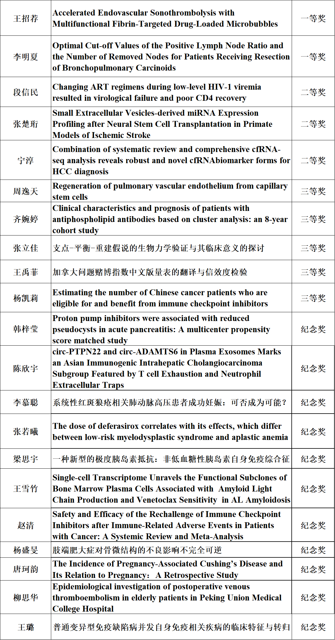 經過專家和學生共同評選,教務處匯總統計,此次墻報展示活動共評選出一等獎2項,二等獎3項,三等獎5項和紀念獎11項。其中臨床八年制2015級王招薦的墻報作品“Accelerated Endovascular Sonothrombolysis with Multifunctional Fibrin-Targeted Drug-Loaded Microbubbles”和李明夏的墻報作品“Optimal Cut-off Values of the Positive Lymph Node Ratio and the Number of Removed Nodes for Patients Receiving Resection of Bronchopulmonary Carcinoids”獲得了一等獎。
