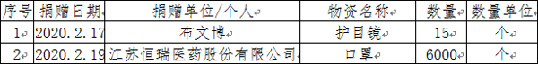 中國醫學科學院北京協和醫學院 抗擊新型冠狀病毒肺炎接受捐贈物資信息公示