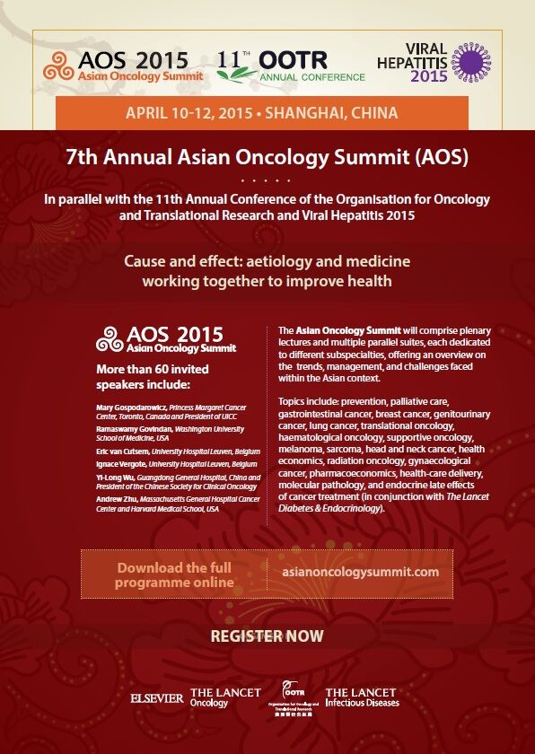 2015年4月10日至12日,第7屆亞洲臨床腫瘤峰會和第11屆臨床腫瘤、轉化研究與肝病組織年會將在中國上海國際會展中心舉辦。病毒性肝炎專題峰會也將首次同時舉行,此次峰會將聚集來自各個學科的專家,為共同研究、促進合作提供了獨一無二的機會。