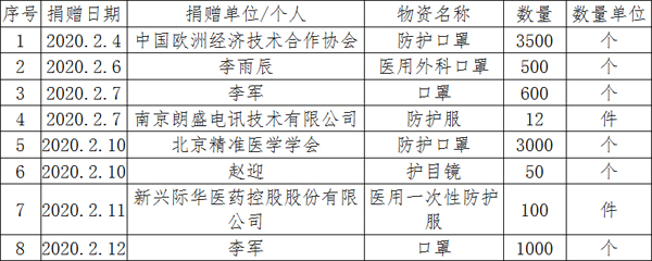 抗擊新型冠狀病毒肺炎接受捐贈物資信息公示