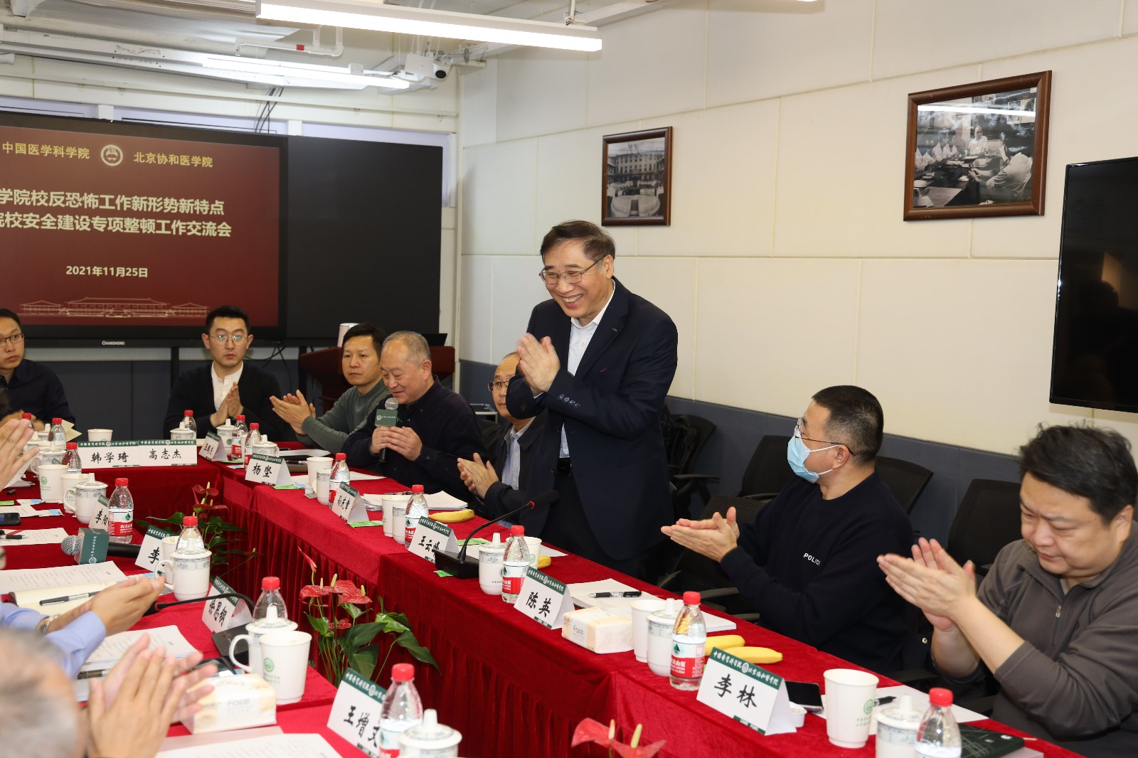 11月25日,醫學院校反恐怖工作新形勢新特點暨院校安全建設專項整頓工作交流會在我單位召開。公安部治安局、北京市教工委安穩處、北京市公安局內保局文保支隊、武警部隊特警學院、北京市高教保衛學會等上級部門領導和業務工作指導部門的專家參會指導。會議開始前各位專家對我單位開展學校安全整頓工作進行了現場檢查并交換了意見。工作交流會由院校保衛處楊堅處長主持。