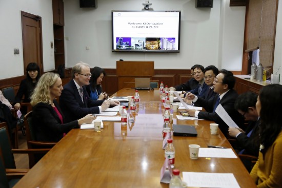 應院校長曹雪濤院士的邀請,瑞典皇家工程院院士、諾貝爾醫學獎評審委員會核心成員、卡羅林斯卡醫學院(Karolinska Institute,KI)院長Anders Hamsten教授一行于2016年1月21-22日來華訪問,22日下午, Anders Hamsten教授訪問院校,做客中國醫學科學院“協和大師講堂”并與部分所院領導、專家座談,針對下一步合作進行深入探討。醫科院青年科學家創新聯盟部分成員,以及所院師生近300人參加。曹雪濤院校長主持了此次學術和座談活動。