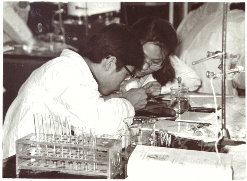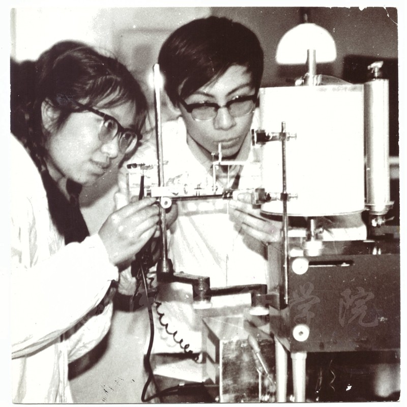 79級學生宋松、張建平(女)在做實驗