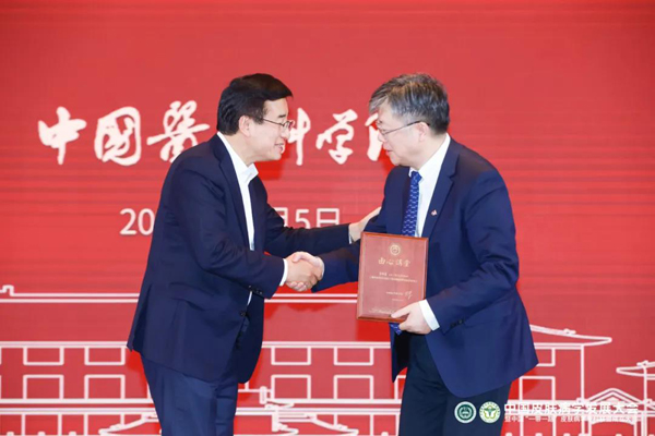 中國醫學科學院北京協和醫學院院校長王辰院士為主講嘉賓頒發紀念證牌。
