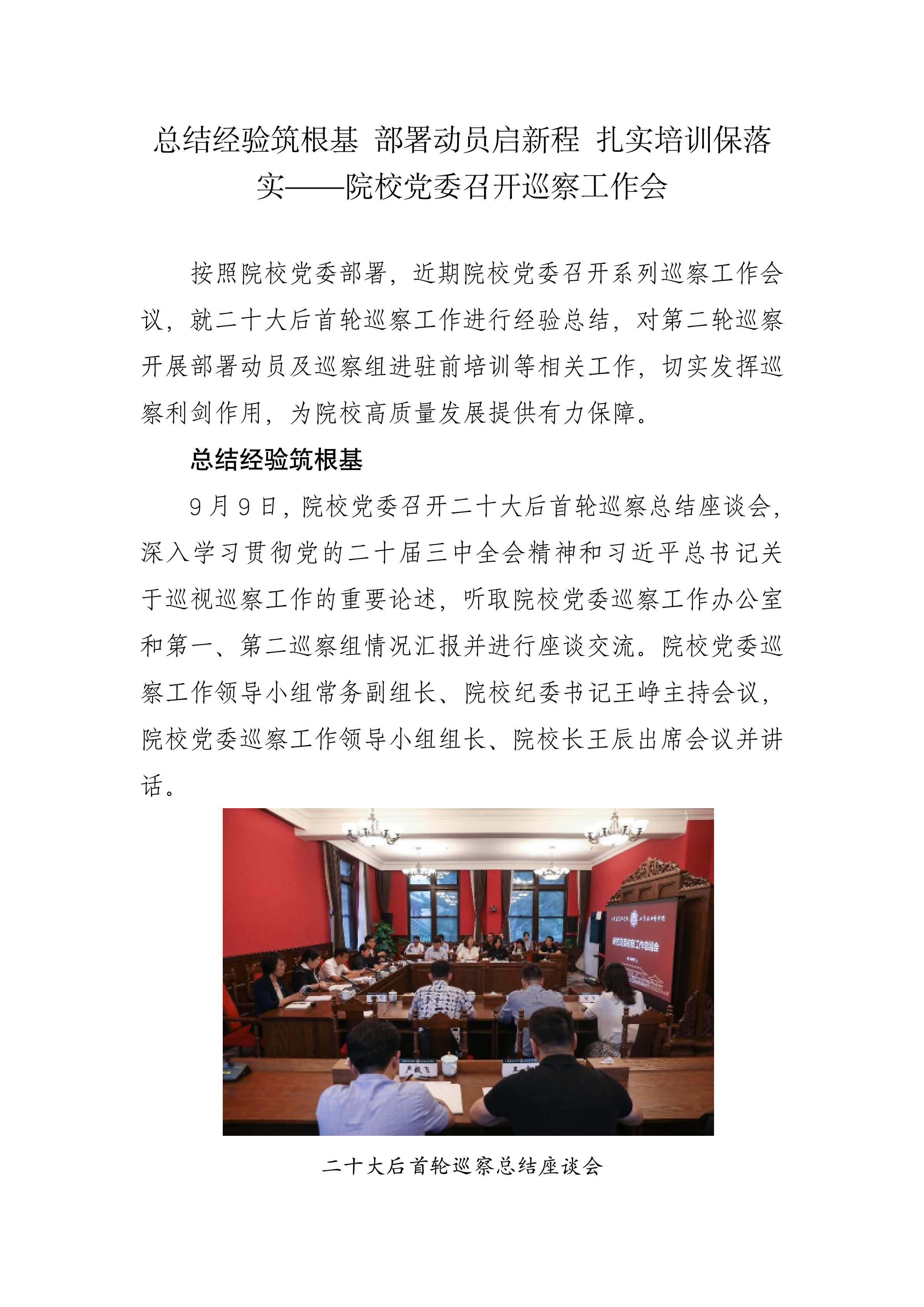 院校黨委巡察工作會議暨二十大后第二輪巡察動員部署會
