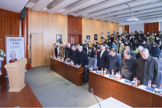 為深切緬懷吳冠蕓教授為協和乃至中國醫學發展作出的卓越貢獻,激勵后輩學人不忘初心、賡續奮斗,2026年3月23日上午,“點亮科學之光,賡續協和精神——緬懷吳冠蕓教授追思會”在可勝大樓八樓西報告廳莊重舉行。中國工程院院士、院校長吉訓明,中國科學院院士、基礎所院教授強伯勤、沈巖,中國工程院院士、基礎所院教授劉德培,院校統戰部部長徐秀珍,院校創新人才處副處長許琪,基礎所院執行所院長王前奔,病原所黨委書記楊俊濤,基礎所院黨委副書記、紀委書記馮敬,副所院長黃波、陳厚早,黨委委員劉英,生化學系副主任彭小忠,以及吳冠蕓教授家屬、同事、所院師生代表等100余人參加會議。會議由生化學系主任蔣澄宇主持。