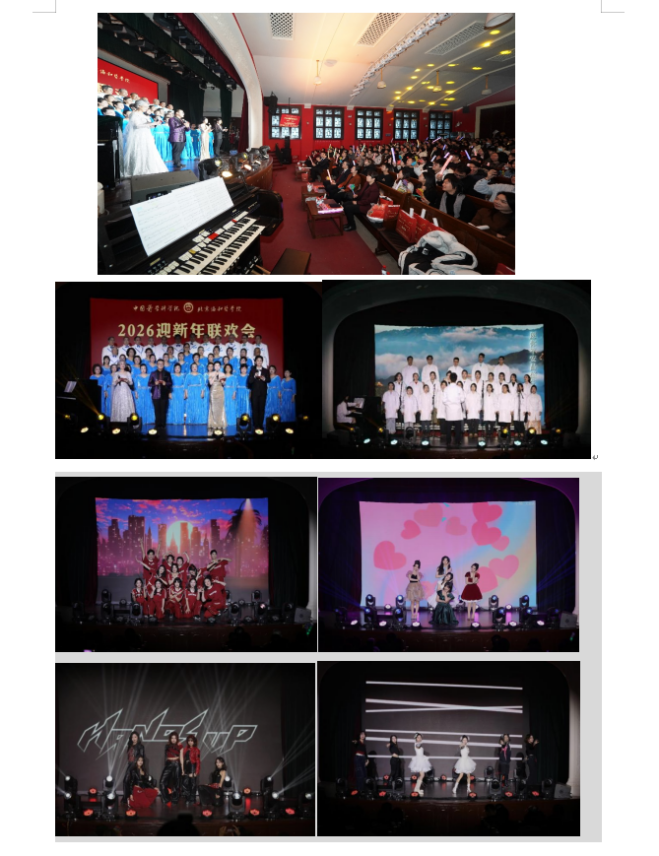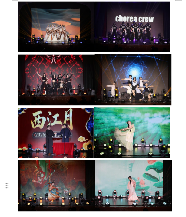 由離退休教職工組成的“協和音”合唱團以悠揚恢弘的《壯美延安》與歡快靈動的《新年好》驚艷開場。婉轉旋律承載信仰之力,輕快節奏傳遞新春喜悅,為聯歡會正式拉開序幕。博雅合唱團傾情演繹《瑤山夜歌》《天耀中華》,抒發新時代中華兒女的家國豪情與民族自信。校舞蹈隊的《大漠沙海》和舞蹈串燒《茶花開了》《蘇公堤》《念琵琶》唯美登場,裙裾輕揚間,東方美學的浪漫與韻味盡顯,意境悠遠,引人沉醉。相聲《西江月》創意十足,用幽默的對白與生動的演繹,將對科研人的祝福送進協和人的心中。歌曲《Love in the dark》《烏蘭巴托的夜》《海芋戀》,將青春熱忱與純粹美好盡情傳遞。飛揚舞蹈團的《奔跑的青春》、NINEVER女團的《What is Love》、Chroea Crew街舞社的《Hands Up》與《Swag it Out》,以及舞蹈串燒《You and me》《Girl boss》《Talk that talk》點燃全場,以飽滿熱烈的青春姿態展現協和青年學子的蓬勃朝氣與無限活力。院校老師們帶來的歌舞樂器表演《不忘初心》《瘋狂動物城》,又以多元形式詮釋為醫為師的赤誠初心。老師和同學們以飽滿熱忱登臺獻藝,用精湛表演致敬過往時光,更將青春的憧憬與對未來的希冀娓娓訴說。