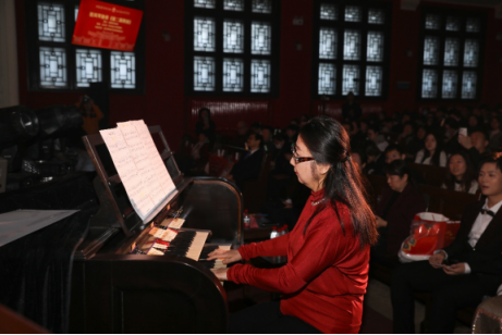 中央音樂學院沈凡秀教授傾情獻上管風琴獨奏《第二圓舞曲》。百年協和管風琴再度鳴響,優雅深情的旋律如月光灑落、時光流淌,既承載著公益溫度,又彰顯著百年協和的深厚底蘊。