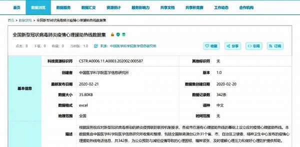 2020年2月21日,國家人口健康科學(xué)數(shù)據(jù)中心發(fā)布“全國新型冠狀病毒肺炎疫情心理援助熱線數(shù)據(jù)集”。根據(jù)國務(wù)院應(yīng)對新型冠狀病毒肺炎疫情聯(lián)防聯(lián)控機制要求,各省市在原有心理援助熱線的基礎(chǔ)上設(shè)立應(yīng)對疫情心理援助熱線。本數(shù)據(jù)集由中國醫(yī)學(xué)科學(xué)院醫(yī)學(xué)信息研究所收集和整理,包括全國除港澳臺以外31個省、市、自治區(qū)衛(wèi)健委、精神衛(wèi)生中心發(fā)布的疫情心理援助熱線電話信息,共342條,為公眾預(yù)防與減輕疫情導(dǎo)致的心理困頓、精神緊張,及時緩解心理壓力和做好心理防護提供幫助。該數(shù)據(jù)集可通過國家人口健康科學(xué)數(shù)據(jù)中心倉儲PHDA(www.ncmi.cn)瀏覽和免費開放獲取。該數(shù)據(jù)集已應(yīng)用于由中國醫(yī)學(xué)科學(xué)院醫(yī)學(xué)信息研究所研發(fā)的“新冠肺炎疫情追蹤和救治查詢”應(yīng)用服務(wù),為公眾提供新冠病毒疫情心理援助熱線查詢和撥打功能,可通過掃描下方二維碼訪問或通過國家人口健康科學(xué)數(shù)據(jù)中心首頁直接訪問,使用相關(guān)服務(wù)。