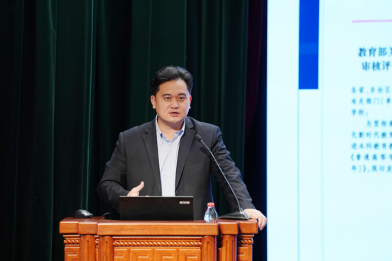 教育部教育質(zhì)量評(píng)估中心江河副主任就本科教育教學(xué)審核評(píng)估工作作專題報(bào)告。報(bào)告從國(guó)家戰(zhàn)略高度闡釋了教育評(píng)價(jià)的深遠(yuǎn)戰(zhàn)略意義。報(bào)告指出,習(xí)近平總書記多次強(qiáng)調(diào)教育評(píng)價(jià)改革的重要性,評(píng)估工作在筑牢質(zhì)量底線、推動(dòng)高等教育快速發(fā)展發(fā)揮著重要作用。新一輪審核評(píng)估在導(dǎo)向、內(nèi)涵、類型、方法及功能上有所改變,強(qiáng)化立德樹人,注重分類發(fā)展與柔性評(píng)估,推動(dòng)高校服務(wù)國(guó)家戰(zhàn)略和區(qū)域發(fā)展。