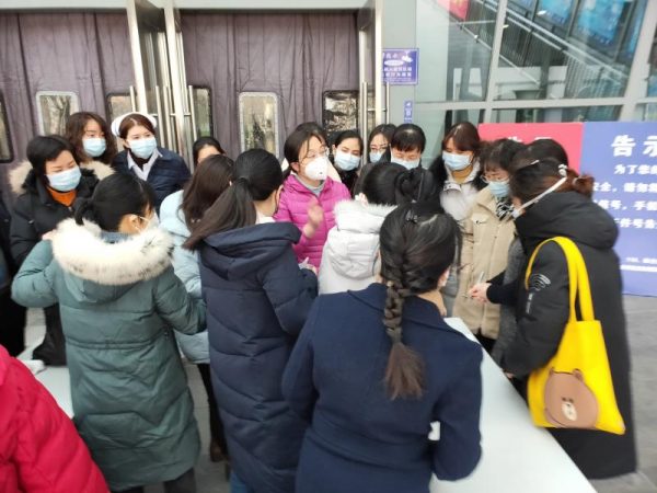 春節(jié)后門診開診前,曹春艷現(xiàn)場帶領(lǐng)護士長培訓門診預(yù)檢人員