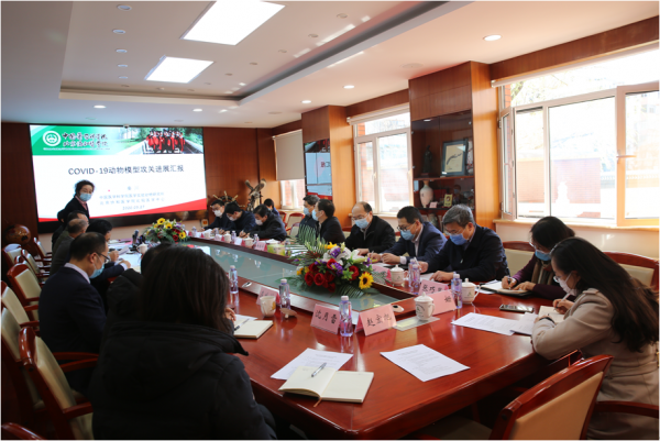 2020年3月27日下午,科技部徐南平副部長一行前往中國醫學科學院醫學實驗動物研究所調研COVID-19科技攻關工作。科技部社發司司長、動物模型專班組長吳遠彬,成果區域司副司長黃圣彪,生物中心主任、藥物專班組長張新民,21世紀中心主任、傳播途徑專班組長黃晶,社發司處長劉健、辦公廳秘書彎昭鋒,生物發展中心醫藥生物技術處處長盧珊,21世紀議程管理中心處長張巧顯,以及中國食品藥品檢定研究院王軍志院士等專家,王健偉副院校長,醫學實驗動物研究所秦川所長、劉江寧副所長和有關科研人員參加調研。