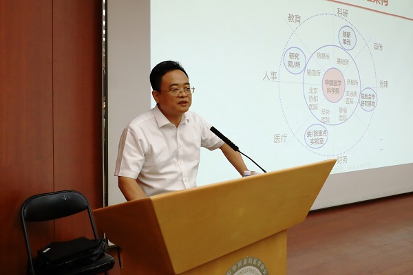 王辰院校長在講話中強調,信息是當今時代重要的資源,具備完備的信息化管控能力是確保院校戰略意圖有效實施的關鍵路徑,是支撐院校各項工作順利開展的重要舉措。院校機關和各院所要堅定貫徹信息化發展戰略,不斷打破原有的封閉觀念,打造院校信息化建設新局面,鑄就國家醫學科技創新體系及核心基地信息管理支撐新格局。院校機關及各所院要把握信息化建設的契機,整合信息資源,革新管理思維,積極應對困難與挑戰,努力推進醫學科技創新體系與核心基地建設數字化支撐工程。