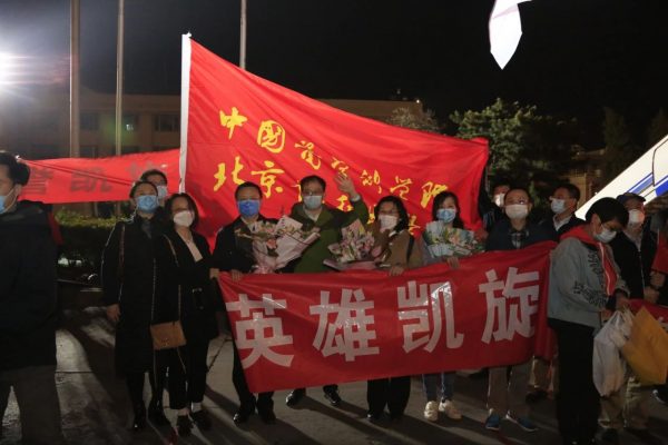 國家衛生健康委機關黨委楊建立書記主持歡迎儀式。中國工程院黨組書記、院長李曉紅,北京市政府副秘書長陳蓓,院校黨委書記吳沛新,中日友好醫院院長孫陽等領導,中日醫院和院校工作人員組成歡迎隊伍在機場迎接援鄂英雄歸來。