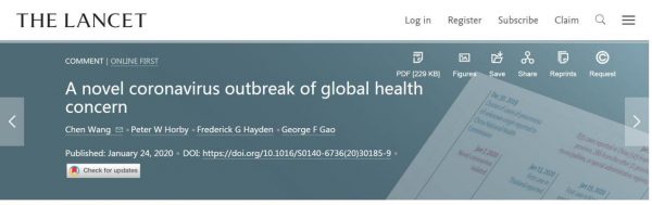 1月24日,《柳葉刀》在線發(fā)表了兩篇原創(chuàng)研究論文、兩篇評論及一篇社論。