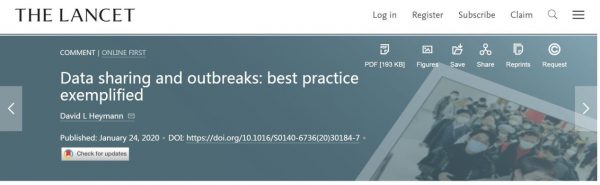 Heymann D. (2020). Data sharing and outbreaks: best practice exemplified. The Lancet.