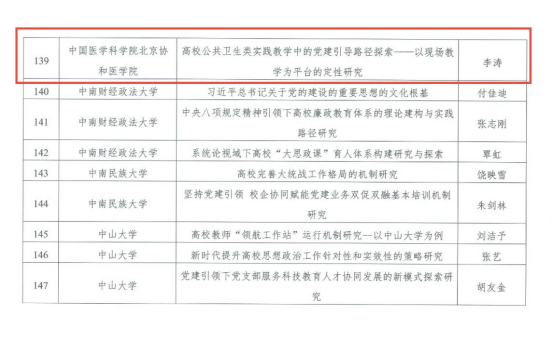 近日,全國黨建研究會高校黨建研究專業(yè)委員會公布了2025年度立項課題名單,經(jīng)評審,立項課題187項。生策學(xué)院黨支部申報的《高校公共衛(wèi)生類實踐教學(xué)中的黨建引導(dǎo)路徑探索——以現(xiàn)場教學(xué)為平臺的定性研究》獲批立項。該課題立足公共衛(wèi)生實踐教學(xué)特色,圍繞“立德樹人”根本任務(wù),聚焦黨建引導(dǎo)在實踐教學(xué)中的作用機制,探索“黨建+實踐教學(xué)”深度融合的創(chuàng)新模式。