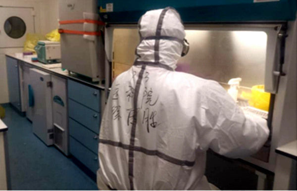 徐傳勝在P3實(shí)驗(yàn)室工作
