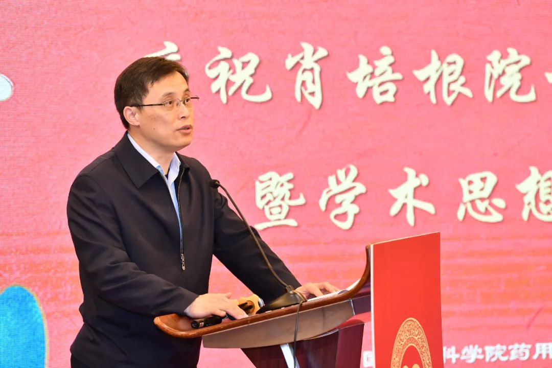 王辰院校長對肖培根院士90華誕表示熱烈祝賀,對其在院校發展歷程中做出的杰出貢獻表示崇高敬意。他高度評價了肖培根院士在藥用植物開發利用研究領域取得的開創性成就,對肖培根院士為人為學態度和奉獻精神表示贊佩,并希望肖培根院士永葆健康,繼續為國家和院校培養更多優秀人才。