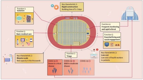 《柳葉刀》(The Lancet)于4月2日發表由中國醫學科學院王辰院士及海德堡大學醫學院Till B?rnighausen教授領銜的關于方艙庇護醫院(Fangcang shelter hospitals)的衛生政策文章。本文描述了武漢市發生COVID-19期間方艙庇護醫院的構建與應用情況,并闡明其三個主要特點(建設快、規模大、成本低)和五個主要功能(隔離、分診、基本醫療、密切監測和快速轉診、基本生活和社會活動)。方艙庇護醫院將成為國家應對COVID-19以及未來感染病和突發公共衛生事件的一項有力舉措。