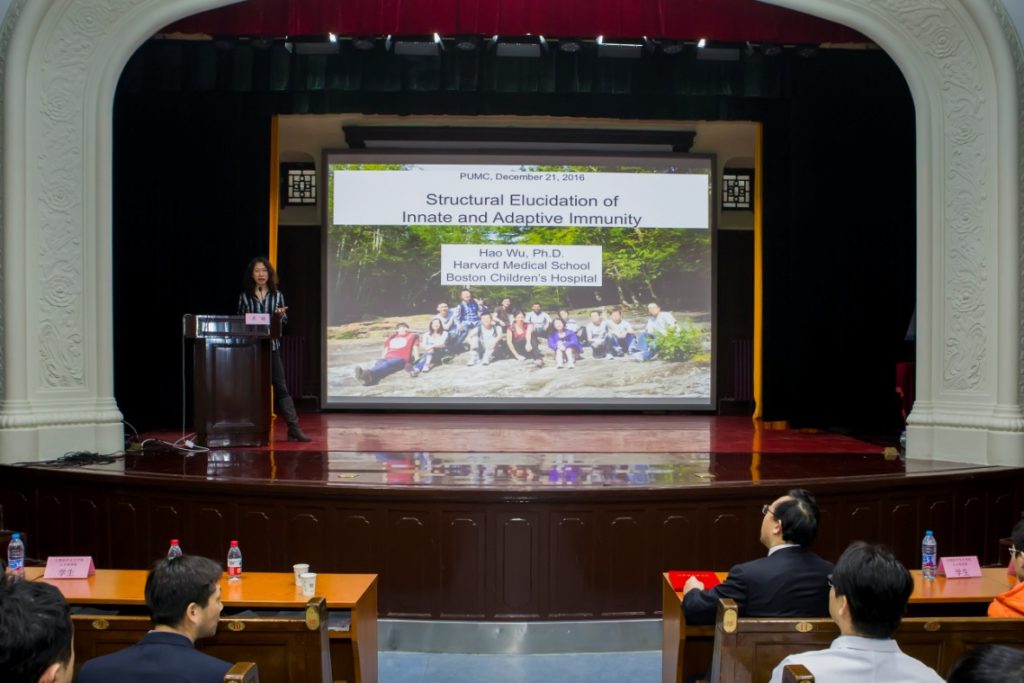 吳皓教授于2015年當選為美國國家科學院院士,是國際著名的結構免疫學家。她于1982年考入北京協和醫學院主攻臨床醫學,1992年獲得美國普渡大學的生物化學博士學位。2003年成為美國康奈爾大學威爾醫學院的教授,2012年被聘為哈佛大學醫學院生物化學及分子藥理學教授,并擔任波士頓兒童醫院研究員。吳教授主要通過x-射線晶體衍射和電子顯微鏡方法,解析免疫受體尤其是天然免疫受體蛋白結構,進而闡明免疫受體信號轉導的分子機理。
