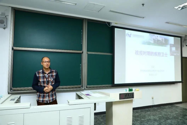 王宏老師以自己的經(jīng)歷為例,講述了疫情期間疾控衛(wèi)士們默默無聞、平凡卻不平靜的抗疫故事。他們的足跡遍布在湖北武漢、黑龍江綏芬河、吉林舒蘭、北京、天津、山東青島、遼寧大連、新疆烏魯木齊、喀什等國(guó)內(nèi)疫情暴發(fā)點(diǎn),不畏艱險(xiǎn)的環(huán)境采樣、科學(xué)抗疫的溯源追兇,疾控衛(wèi)士們召之即來、來之能戰(zhàn)、戰(zhàn)則必勝;一個(gè)個(gè)移動(dòng)負(fù)壓帳篷式實(shí)驗(yàn)室成為他們爭(zhēng)分奪秒與病毒賽跑的抗疫堡壘,病毒溯源在他們夜以繼日的檢測(cè)分析中浮現(xiàn)真相……仗劍執(zhí)守護(hù)民眾,俠骨柔腸疾控人,王宏老師現(xiàn)場(chǎng)分享了他在抗疫期間忙中偷閑創(chuàng)作的數(shù)篇詩(shī)詞歌賦,抒發(fā)自己的抗疫情懷。