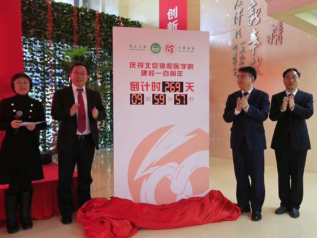 在激昂的音樂(lè)聲中,在激動(dòng)人心的倒計(jì)時(shí)計(jì)數(shù)聲中,院校領(lǐng)導(dǎo)集體上臺(tái),為“慶祝北京協(xié)和醫(yī)學(xué)院建校一百周年校慶倒計(jì)時(shí)牌”揭下帷幕,慶祝北京協(xié)和醫(yī)學(xué)院建校一百周年269天倒計(jì)時(shí)啟動(dòng)儀式正式開(kāi)啟。
