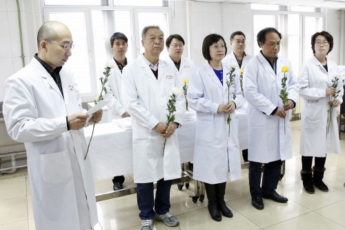 最后,全體教師和學生向大體老師三鞠躬并默哀致敬一分鐘,結束了開課儀式。