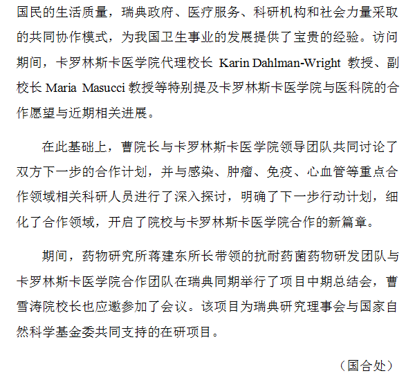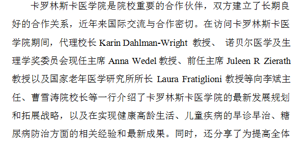 曹雪濤校長陪同李斌主任訪問卡羅林斯卡醫學院