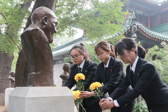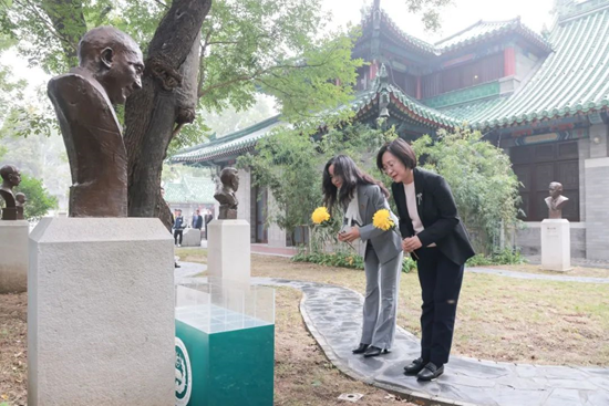 在合影結束后,兩校領導與2023級“協和班”全體同學共同瞻仰了兩校共同的校長——李宗恩教授的雕像,并向其敬獻鮮花,以表追思。