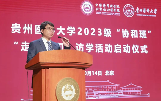 10月14日上午,貴州醫科大學2023級“協和班”“走進協和”訪學活動啟動儀式在協和禮堂舉行。院校黨委副書記張勤,貴州醫科大學黨委委員、副校長齊曉嵐出席啟動儀式并致辭,貴州醫科大學2023級“協和班”學生,兩校相關處室、所院、學院老師共同參加啟動儀式。