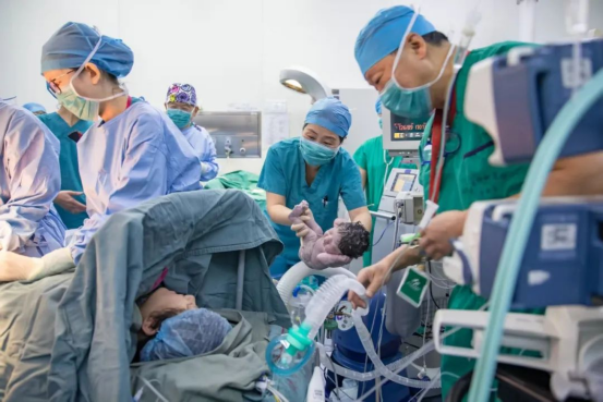 黃宇光(右一)為分娩產(chǎn)婦實(shí)施麻醉鎮(zhèn)痛