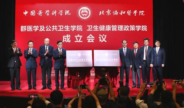為貫徹落實習近平總書記6月2日在專家學者座談會上重要講話精神,面向國家重大戰略需求,創新醫防協同機制,中國醫學科學院-北京協和醫學院(簡稱院校)在原公共衛生學院基礎上成立群醫學及公共衛生學院。同時,為推動衛生健康治理體系和治理能力現代化,成立衛生健康管理政策學院。7月16日下午,兩學院成立儀式在北京協和醫學院壹號禮堂舉辦。