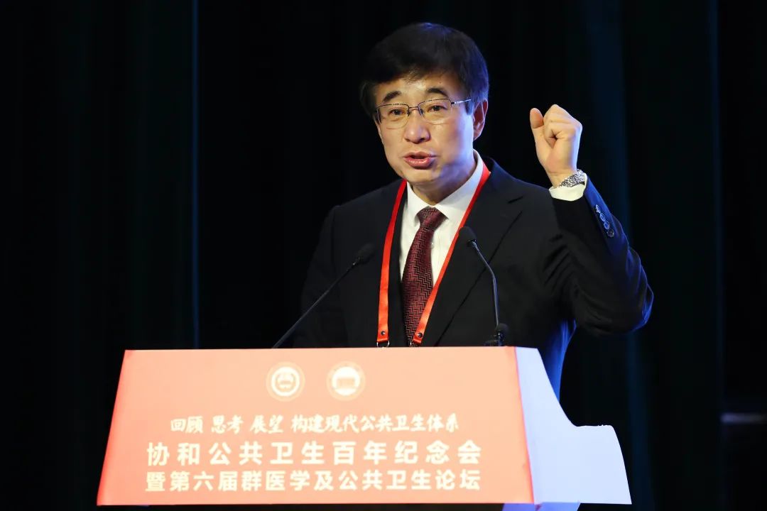 中國工程院副院長、中國醫學科學院院長、北京協和醫學院校長、群醫學及公共衛生學院院長王辰院士作了題為《回顧 思考 展望 構建現代公共衛生體系》的主旨報告。他在報告中重溫了協和百年公共衛生教育和實踐的發展歷程,百年來,協和公共衛生先賢堅持理論與實踐、個體與群體、醫學與社會相結合的理念,創立“北平第一衛生事務所”,建立了定縣農村三級衛生網絡,開展了健康教育、新法接生、預防接種、改水改廁等公共衛生實踐活動。在消除黑熱病、瘧疾、絲蟲病、梅毒、麻風病,以及林縣食管癌防治、首鋼社區高血壓防治、大慶糖尿病預防、控煙、肺心病防治等方面都做出了開創性貢獻,在新冠疫情防控中發揮了重要作用。王辰院士指出,21世紀面臨著環境和氣候改變、人口老齡化、新發和再發傳染病、生物安全、不健康生活方式等公共衛生挑戰,現有的醫學教育和醫療衛生體系難以滿足應對挑戰的需求。因此,協和醫學院提出“群醫學”理念,從健康促進和疾病的預防、診斷、控制、治療、康復,以醫學為基礎,統籌個體衛生行為與群體衛生行動,以促進防治結合,實現改善我國人群健康的目標。王辰院士還介紹了協和醫學院群醫學學科及研究體系的建設發展規劃。