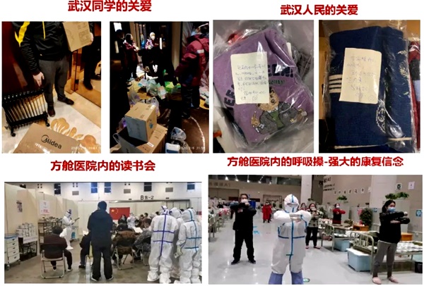 阜外醫(yī)院 2013 級畢業(yè)生車武強(qiáng),作為中日友好醫(yī)院第四批援鄂抗疫醫(yī)療隊(duì)的隊(duì)員,講述了在援助武漢期間的一個個充滿溫情的故事,描繪了一幀幀扣人心弦的畫面,為大家展示了疫情背后的另一面——疫情下的愛。那些畫面中有熱愛生活的50歲阿姨為病友們演奏二胡,有為打發(fā)閑暇時間互相鼓舞的方艙讀書會,有熱愛學(xué)習(xí)的小少年在方艙小書桌上寫下的“獻(xiàn)給最可愛的人”的一封信,有帶著“強(qiáng)大康復(fù)信念”的方艙內(nèi)集體呼吸操,有特殊情人節(jié)來自前線和大后方的愛……大家紛紛表示“濕了淚框”,更加堅定為醫(yī)學(xué)事業(yè)奮斗終生的決心。