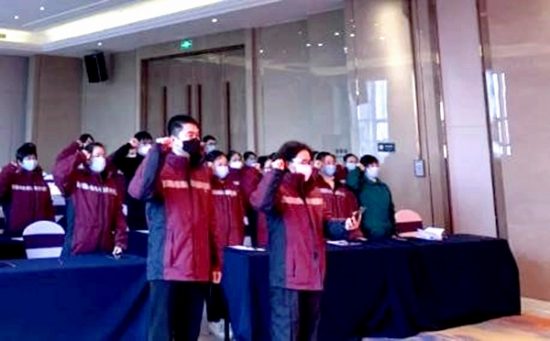 李紅對隊員的工作是高標準嚴要求的。嚴格進行上崗前防護培訓和業務培訓,不合格者不得上崗。不到一個月時間已開展全員在線理論知識考核300人次,技能考試200人次,艙內急救技能現場抽考20余次。大家各自在房間里掃描小程序手機答題,院感防護、救治能力、急救技能、人文關懷、個性化照護、患者情緒管理等。她說“要把抗疫一線作為隊員專業成長的特殊黃埔軍校。”她還嚴格駐地院感管理,嚴禁隊員除上崗以外的外出活動,建立每日駐地更衣帳篷和宿舍整潔的巡查制度。