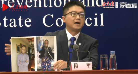 段軍說:“我們和這兩位大夫一直都有交流和聯系。有一句話,你若性命相托,我必全力以赴,我們早已成為了生死之交。易大夫知道段軍今天要來參加新聞發布會,特意在今天上午把他的照片發過來,并囑托我一定要把他的感謝表達給一直關心和幫助他的各位媒體朋友,包括各位同事和親人。”